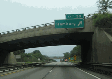 BEFORE: This 2004 photo shows the westbound I-78 / US 22 at EXIT 30 (North 4th Street / Hamburg) prior to its reconstruction in the late 2000s. The original US 22 was rebuilt as a freeway through this area in 1956-1958 and added the I-78 designation in 1958, but still did not reflect updated Interstate highway design standards. (Photo by Alex Nitzman, www.aaroads.com.)